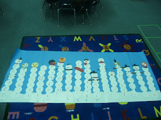 You'll notice I decided to leave off the stick arms. I fear they will break off anyway when it is time to measure. I also left off the numbers. Since my Kinders learn non-standard measurement, I did not see the point in adding inches. We are going to just mark numbers, like "1" for first snowfall, "2" for second snowfall, etc. In the end, we can compare the snowfalls just as easily that way.